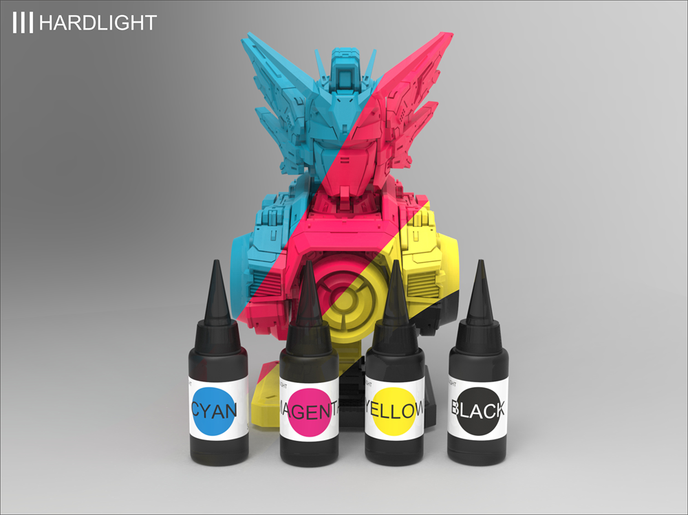 Пигменты созданы для окраски фотополимеров перед печатью без изменения физических свойств напечатанных моделей. За основу цветов пигментов взята полиграфическая схема CMYK, позволяющая по широко распространенным таблицам или калькуляторам CMYK получить любой цвет и оттенок.