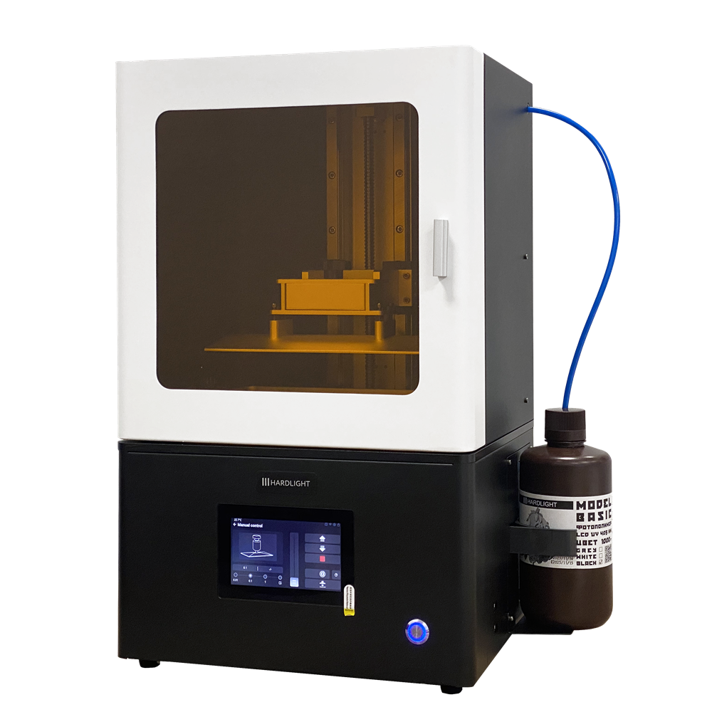 Автодолив фотополимера. Ванна снабжена датчиком уровня фотополимера. " датчика контролируют бутылку с фотополимером.
